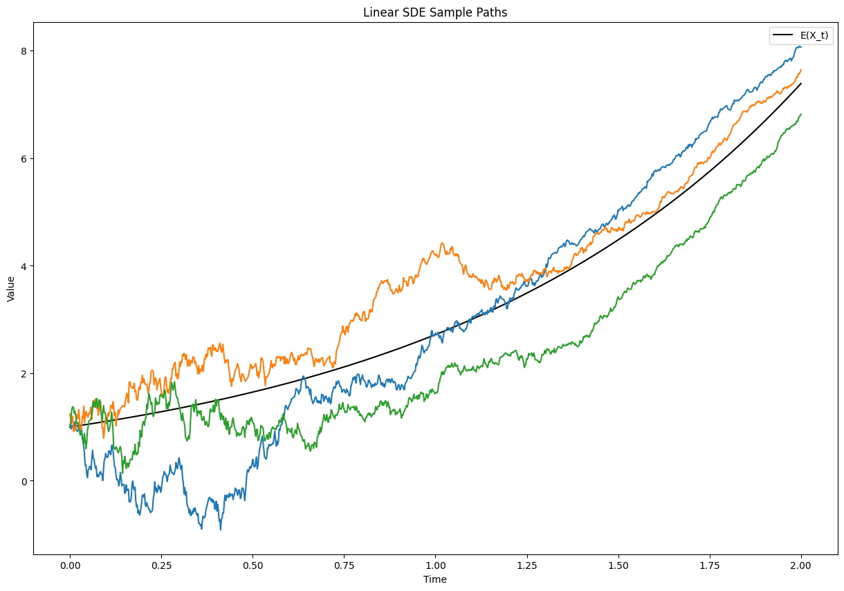 _, linear_sde3 = linear_sde_gen(x_0, mu, sigma, 2, 1000)