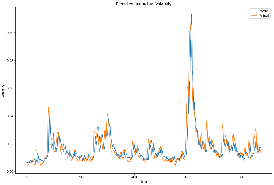 The predictive variables are the VIX, returns of the index, and our calculated realized variance. I include the 21 past values of these variables.